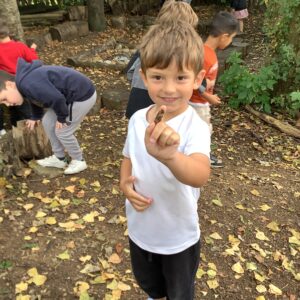Forest School originated in Scandinavia and was brought to the UK in the early 1990s. Children are not taught, but are encouraged to find things out for themselves through play, for example games, stories, creative expression and sharing. Through play, the child develops their initiative and imagination (problem solving), learns resilience and resourcefulness (perseverance and determination), how to give and ask for help and support from peers (emotional intelligence and teamwork), and how to appropriately self-manage risk in an increasingly risky world.