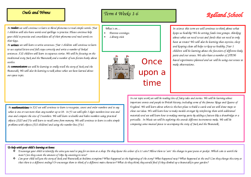 Curriculum Letter Owls and Wrens Term 4