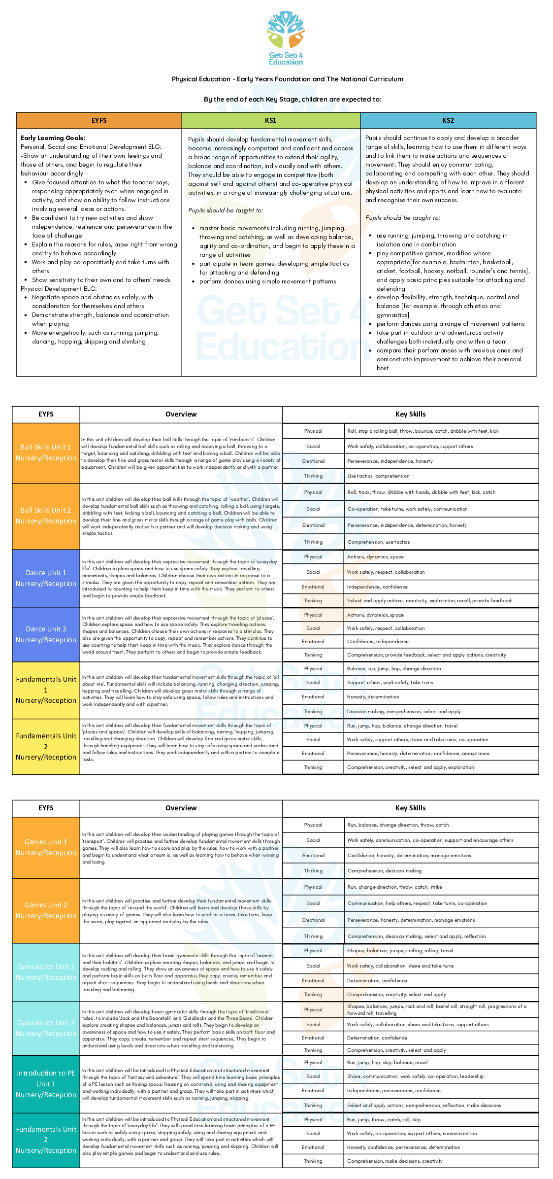 GetSetforPE Year Group Overviews