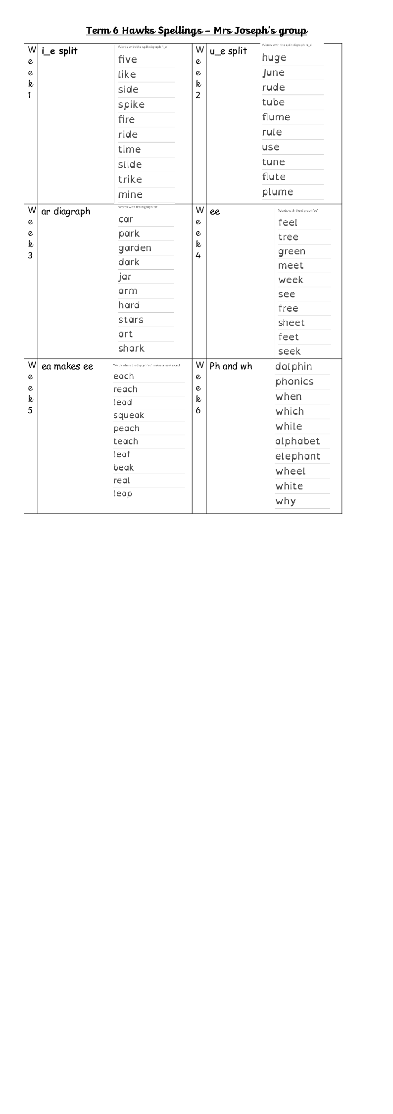 Term 6 Spelling Mrs J